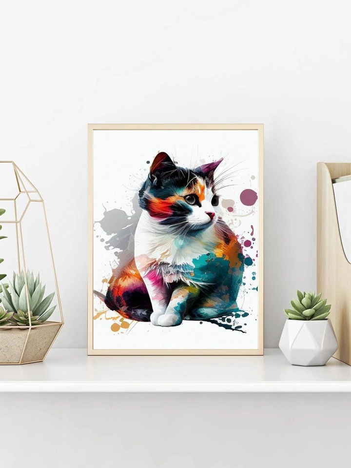 1pc Cat Graffiti Art Canvas Print Painting Animal Portrait Cute Cat Watercolor Black And White Painting Shein Uk